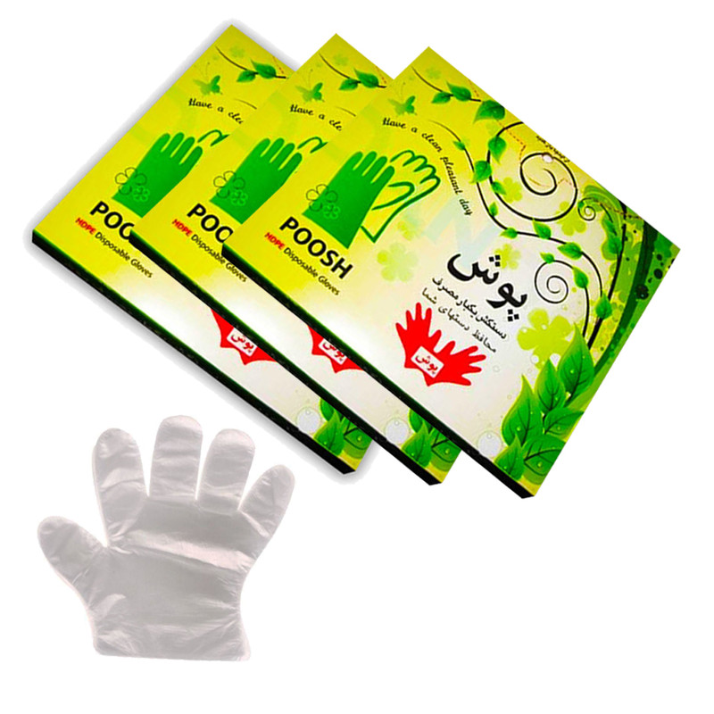 دستکش یکبار مصرف پوش مدل متوسط بسته 100 عددی