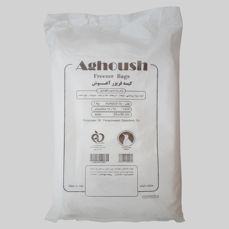 این کیسه فریزر برند آغوش که زیر مجموعه تولیدی پنگوئن سپید اسپادانا میباشد از با کیفیت ترین مواد موجود تولید شده است. این کیسه فریزر ها ضخیم، کاملا شفاف ودارای دوام و کیفیت بسیار خوبی میباشد که به همین علت میتوان بدون نگرانی از بابت نشت مایعات درآن به بسته بندی مایعات،لبنیات ،مرغ،گوشت،ماهی،سبزیجات و... استفاده نمود.