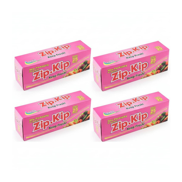 این مجموعه شامل چهار بسته کیسه ی زیپ دار برند زیپ کیپ میباشد که در هر بسته 25 عدد کیسه ی پلاستیکی زیپ دار سایز25*20 سانتی متری موجود است این پک در مجموع شامل100عدد کیسه میباشد .